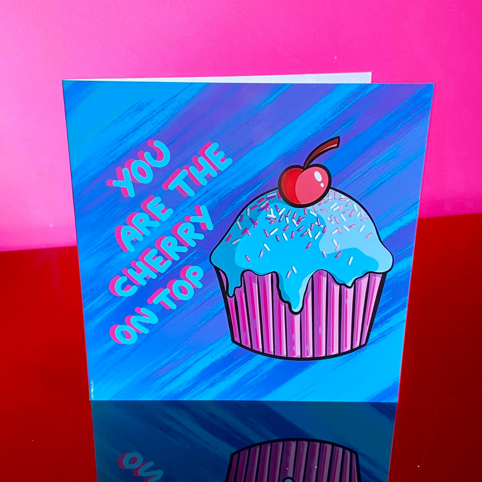 Appreciation cupcake card with cute sentiment ‘you are the cherry on top’.