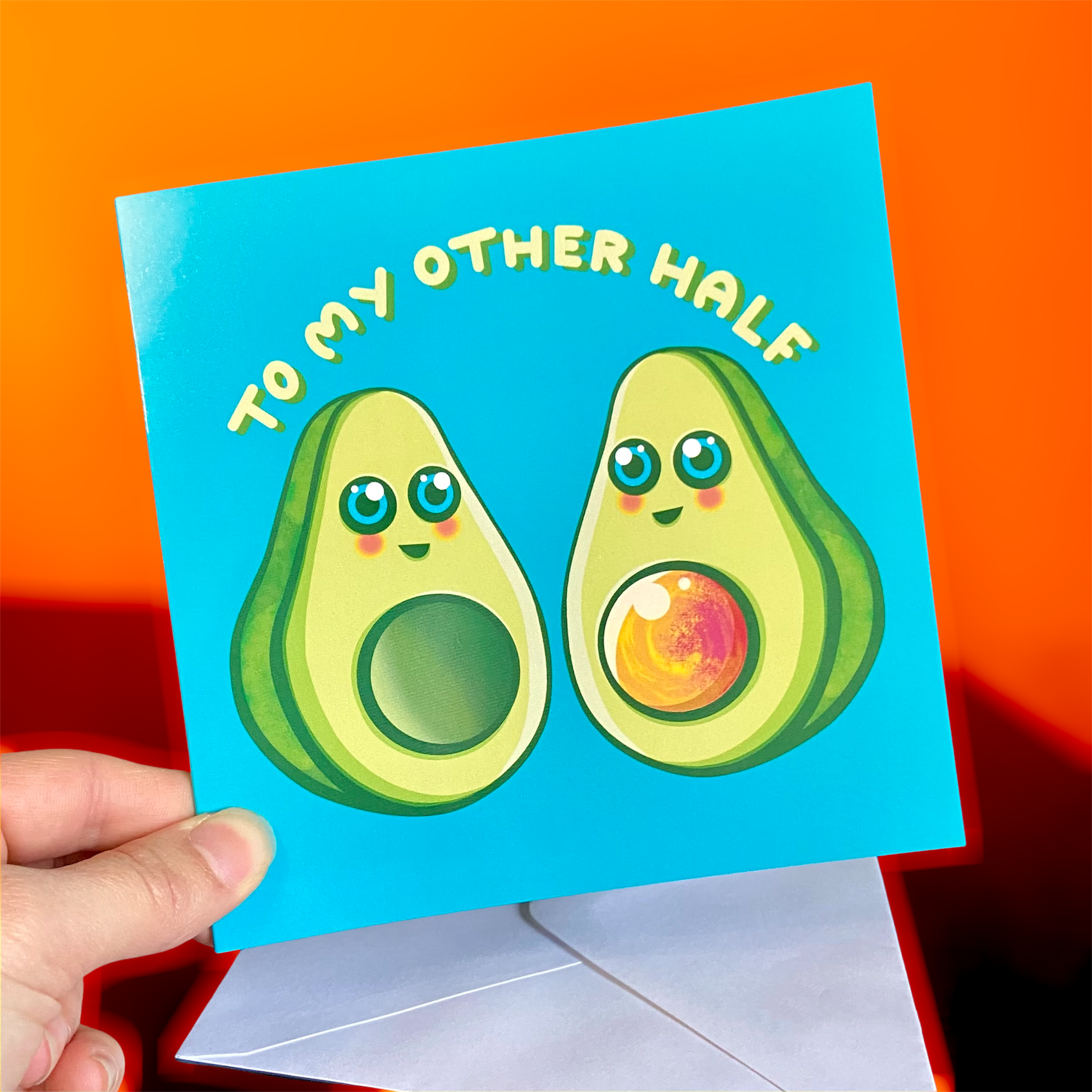 Cute avocado greetings card with fun sentiment ‘to my other half’.