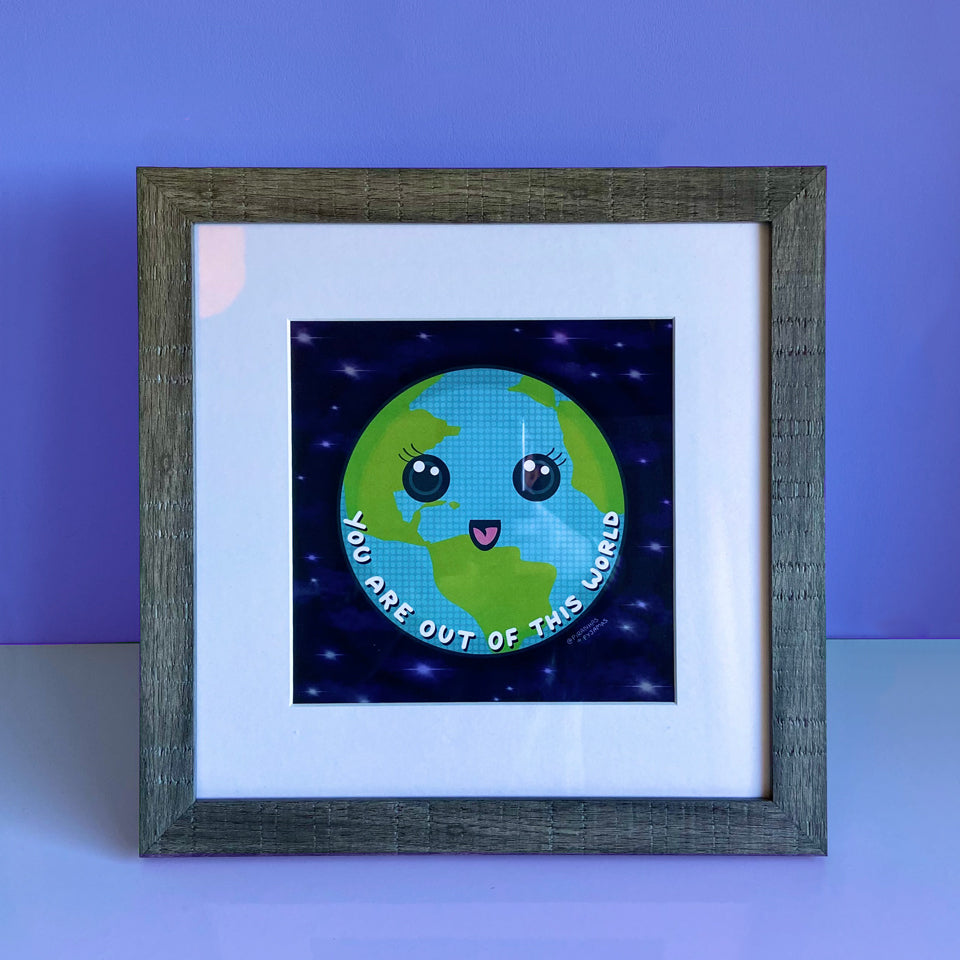 Kawaii Earth Wall Art - 12x12 - Quirky Home - Positive Affirmation - Happy Art