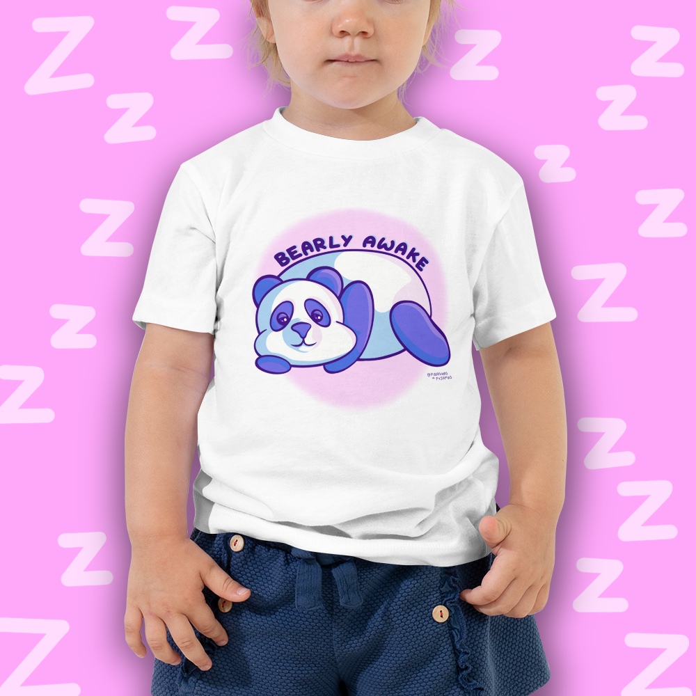 Kawaii Panda T-shirt (White) - Cute Pun - Toddler Tee - 2 to 5 Years - Bearly Awake - Sleepy Panda