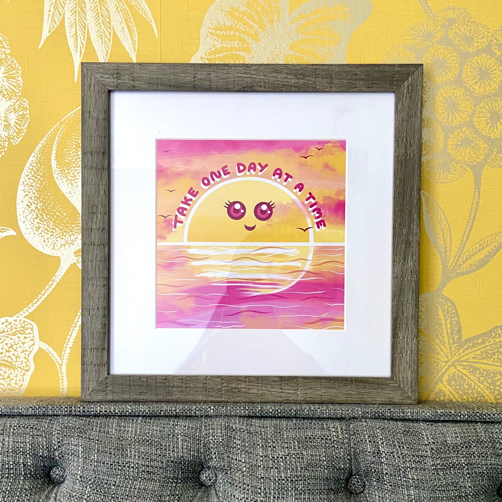 Take One Day At A Time Wall Art - 12x12 - Sunset- Kawaii Sun - Quirky Home