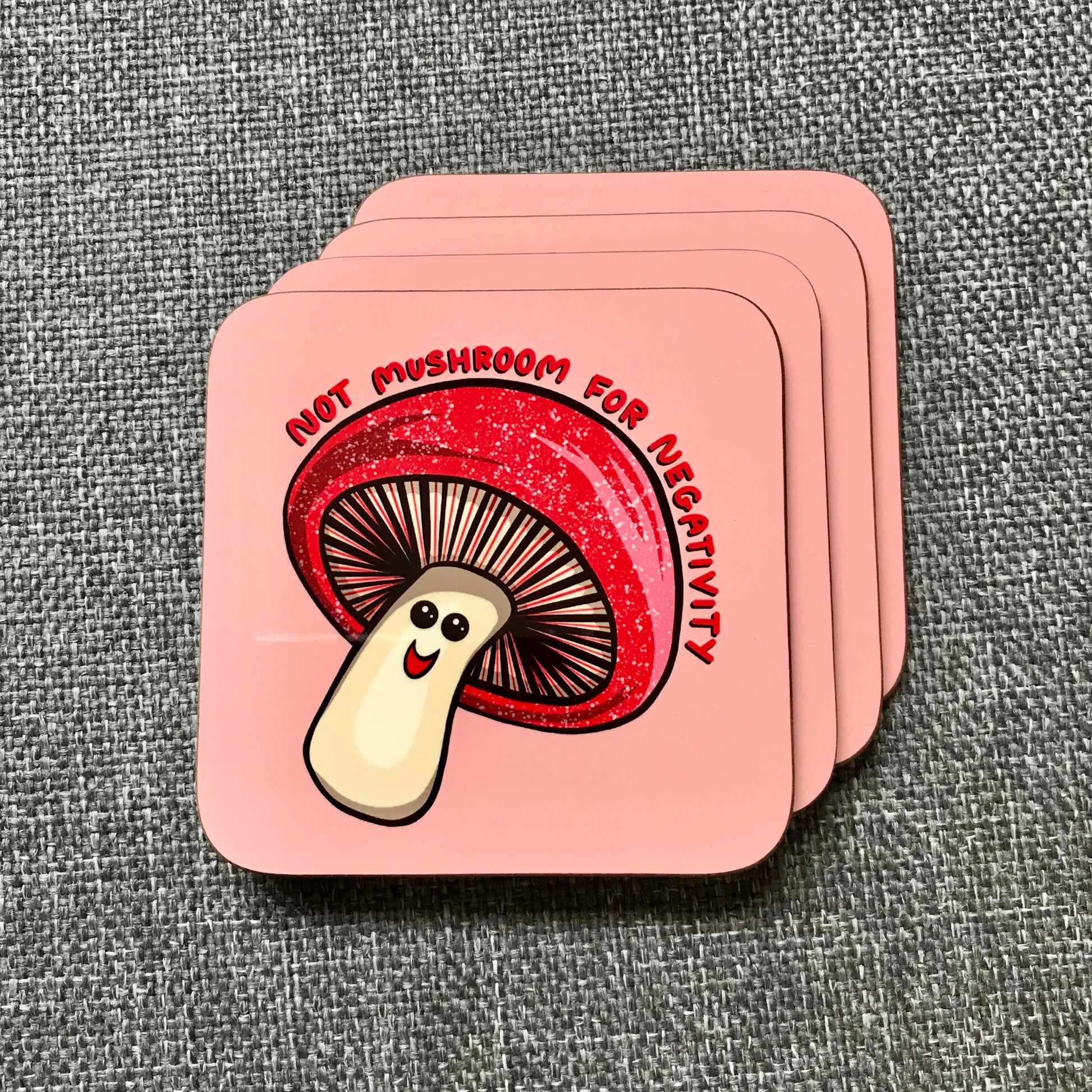 Mushroom coaster with motivational slogan, ‘Not Mushroom For Negativity’.