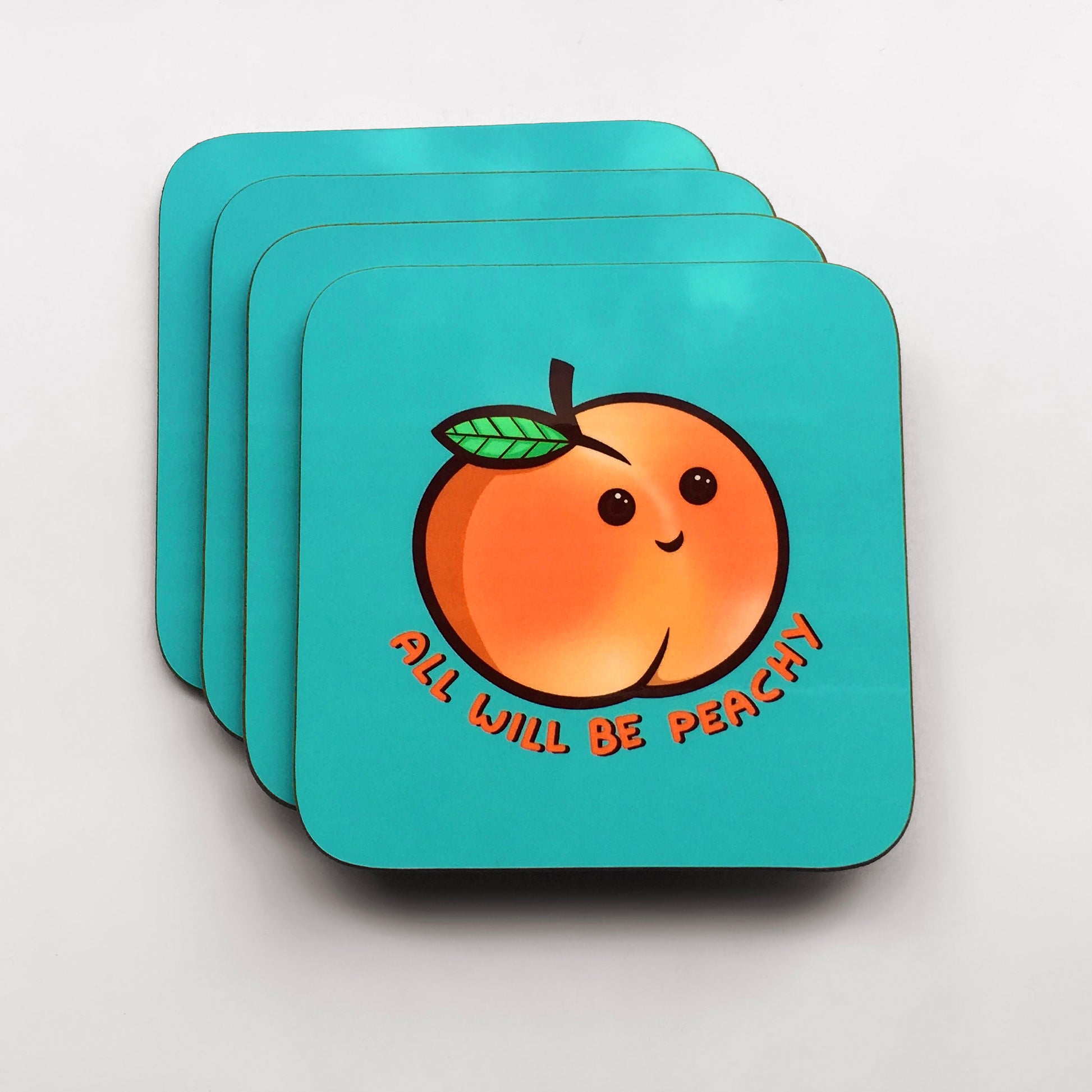 Peach coaster with motivational slogan, ‘All Will Be Peachy’.